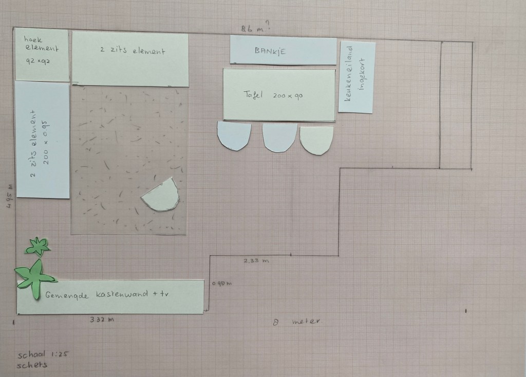 For a young family of four, the open plan living, dining, and kitchen area could use an update to better suit their needs. With two tall teenagers in the mix, the space calls for a more open and spacious feel, comfortable seating for everyone on the couch, and a more cohesive design. With respect for elements from the past in the current interior we made a mood board together. Read more about this Monday Mood board – Modern Vintage, the proposed materials, and colors in this article.
